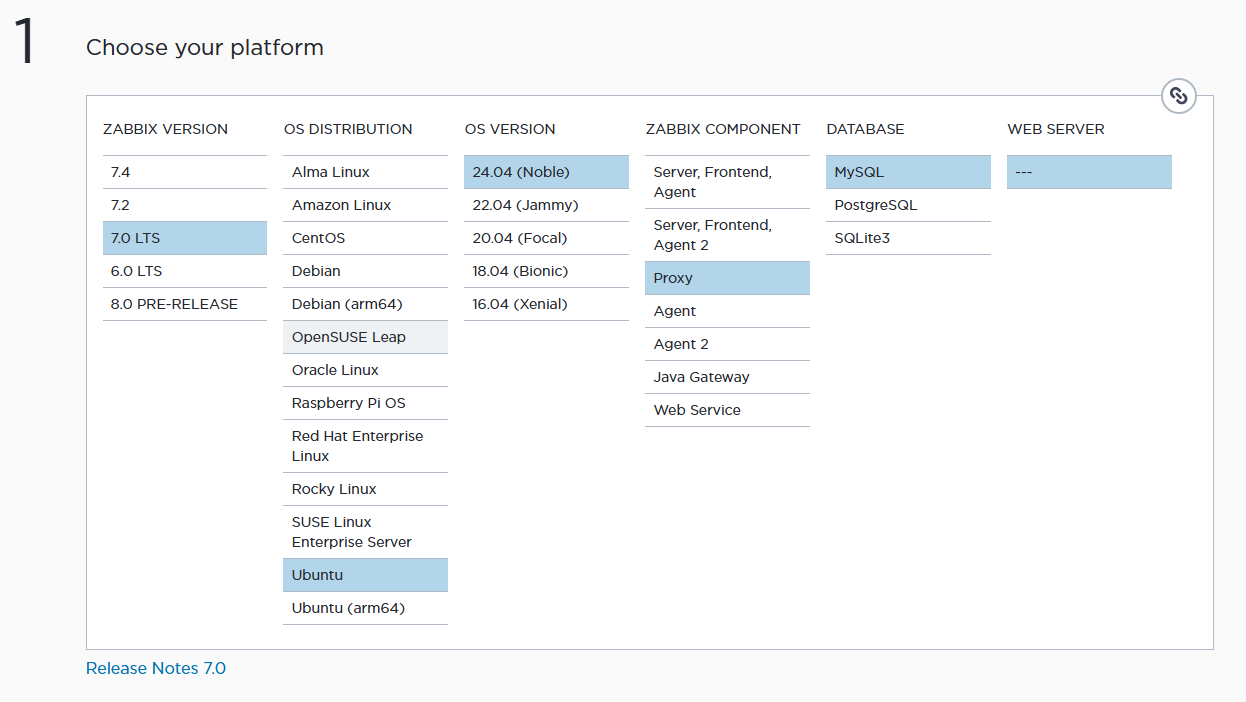 我们操作系统环境是ubuntu server 24.04,zabbix proxy数据库选择MYSQL