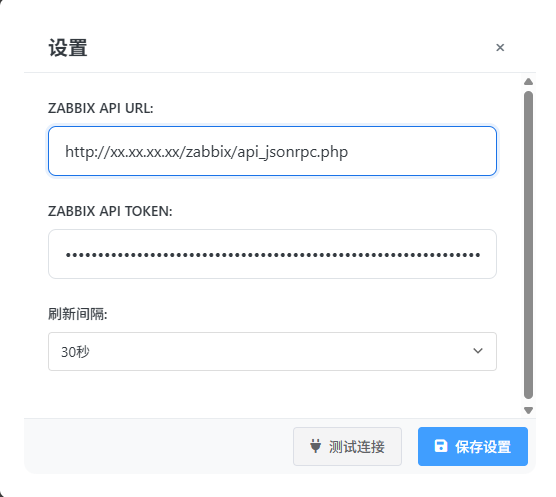 安装完插件,配置ZABBIX API URL 和 ZABBIX API TOKEN即可,zabbix api在zabbix管理界面api中创建,如截图。