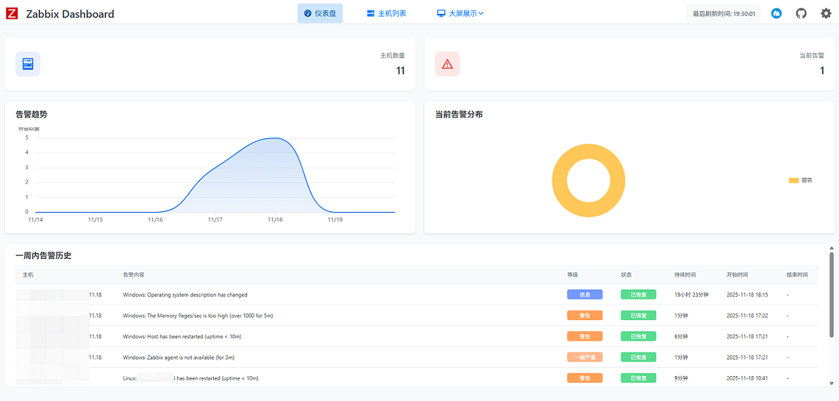 • 告警列表:显示最新告警信息