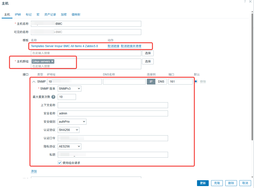 snmpwalk命令测试连通性:snmpwalk -v3 -u admin -l authPriv -a SHA256 -A yyds2025 -x AES256 -X yyds2025 <BMC_IP>Zabbix 可自动发现以下组件: